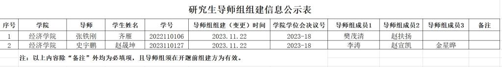 二、研究生导师组原则上应在该生学位论文开题前组建,组建后不得随意变更。学院导师组详细名单和具体信息附后,以供相互监督。研究生导师组的日常管理由研究生导师和培养单位共同负责,研究生导师作为研究生培养第一责任人的职责不变。