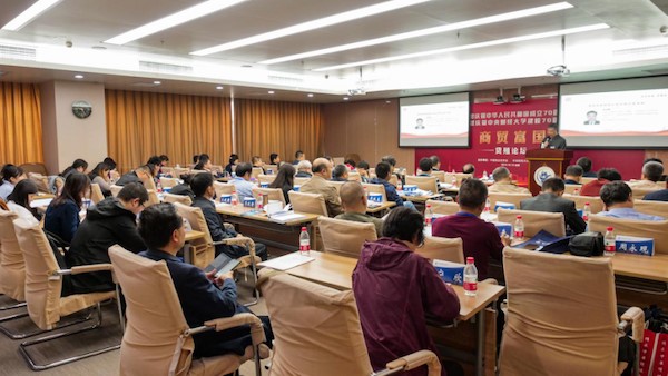 2019年10月12日,中国商业史学会、中央财经大学、国声智库三家联合主办的“商贸富国”《货殖论坛》在中央财经大学隆重举行。商务部原副部长、中国商业史学会名誉会长张志刚,中央财经大学校长王瑶琪,中国商业史学会会长王茹芹,中国商业史学会原副会长、安徽师范大学副书记李琳琦,中国商业史学会常务副会长、中央财经大学校长助理李涛,中国商业史学会副会长、中国社会科学院当代中国研究所副所长武力等来自全国各地的近百名专家学者出席论坛。