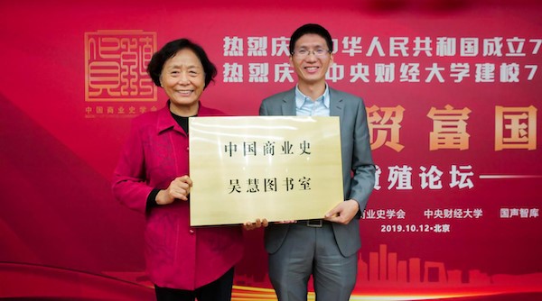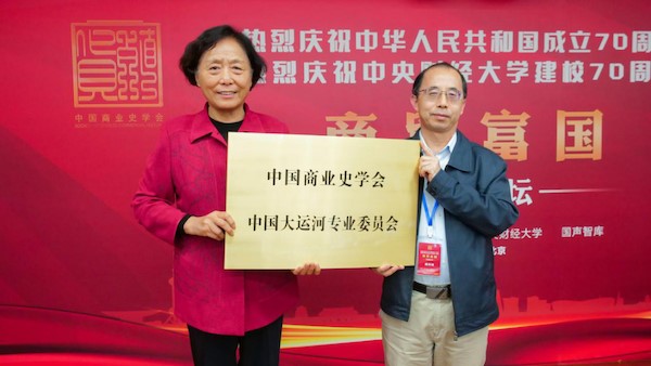 学术交流后,中国商业史学会常务副会长李涛主持授牌仪式,王茹芹会长对中央财经大学授牌“中国商业史吴慧图书室”;对上海交通大学授牌“中国商业史学会中国大运河专业委员会”。