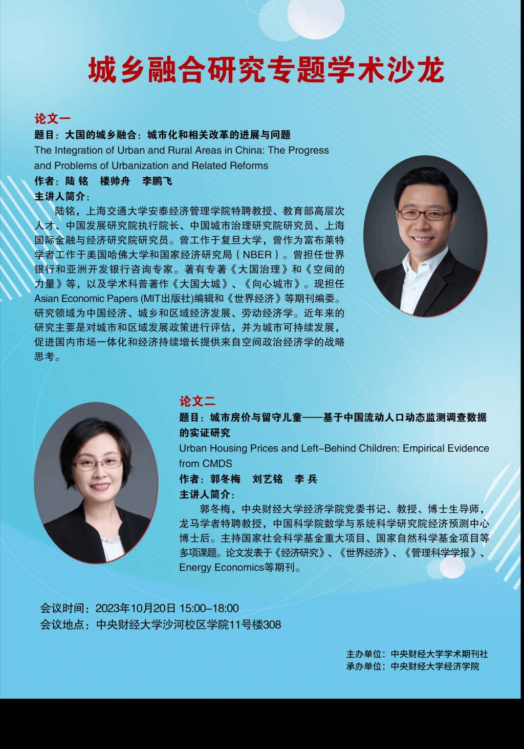 上一条:经世济民大讲坛 | 2023年秋季学期第一讲:陆铭 下一条:议程 | 中央财经大学经济学科建设高峰论坛会议议程