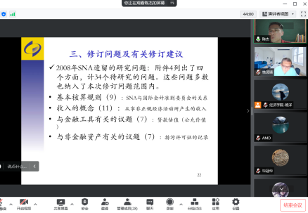 2022年5月26日下午19:00,国家统计局核算司副司长陈杰应必赢766net手机版樊茂清教授邀请,开展主题为“迈向2025年SNA—关于2008年SNA修订进展情况介绍”的讲座,本次讲座通过腾讯会议平台线上举行,陈杰老师受到了老师和同学们的热烈欢迎!必赢766net手机版樊茂清教授主持了本次线上学术交流会。
