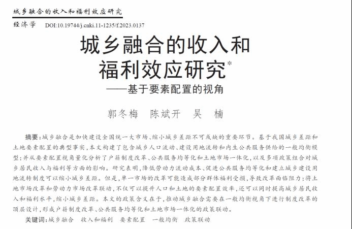 作者:郭冬梅、陈斌开、吴楠
