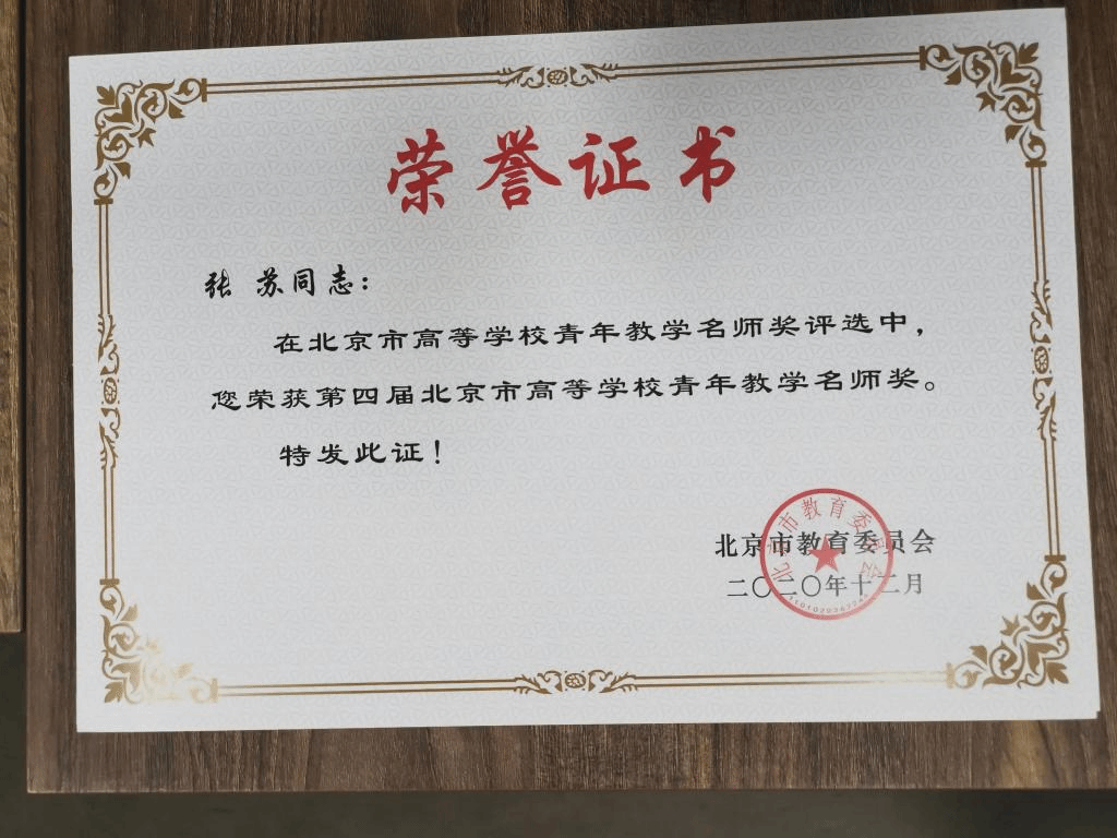 近日,北京市教育委员会公布了“第十六届北京市高等学校教学名师奖和第四届北京市高等学校青年教学名师奖”获奖名单,我院张苏教授获得第四届北京市高等学校青年教学名师奖。