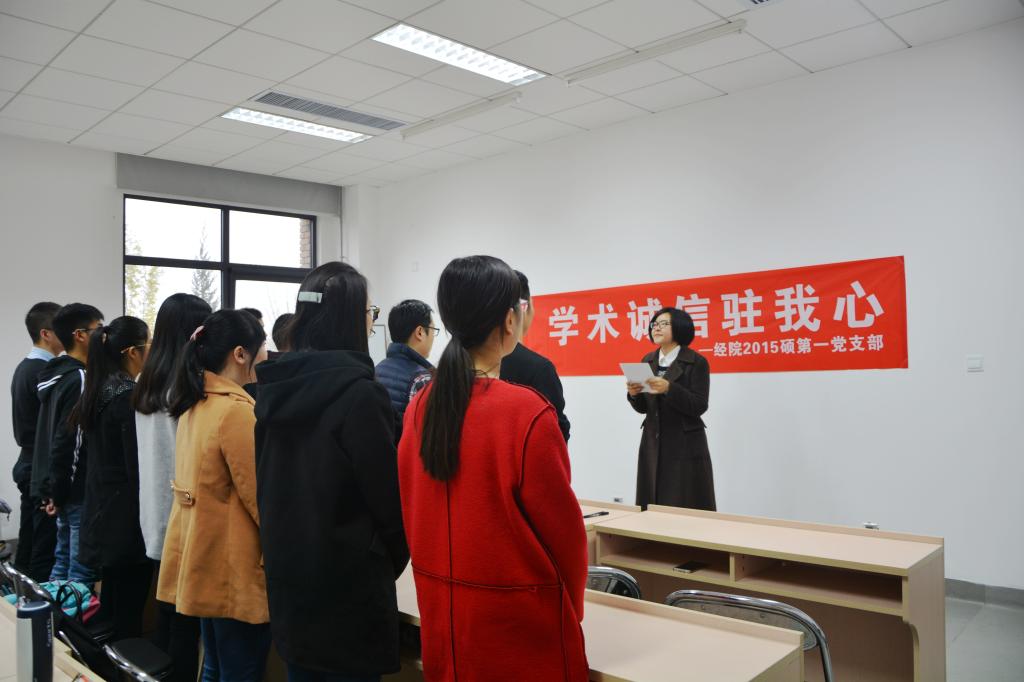 为铭记践行社会主义核心价值观—诚信,端正学术之风,我院2015硕第一党支部开展了“学术诚信驻我心主题教育活动”。活动在必赢766net手机版1号楼进行,必赢766net手机版的任老师为同学们做了学术诚信的讲座,任老师用生动的例子为我们讲述了诚信的价值内涵,剖析了学术诚信应遵守的原则,活动的参与者进行积极的发言,讨论对学术诚信的认知,最后集体进行了学术诚信宣誓,并且在横幅上签名留念,活动取得了良好的效果,学术诚信驻进每位同学之心,人人都争当诚信的代言人。