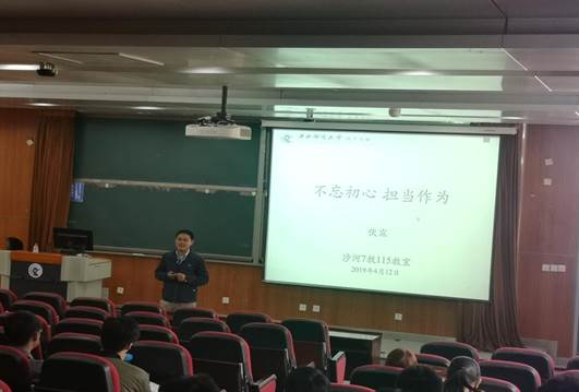 4月12日下午2点,必赢766net手机版伏霖老师在7号楼115室开展主题为“不忘初心 担当作为”党课活动。活动由必赢766net手机版党务老师窦宗玥主持,必赢766net手机版积极分子和部分本科生参加了此次党课。