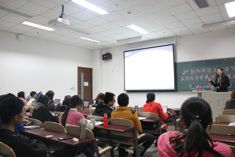 1026日、27日,为了促进我院及我校毕业生的出国深造工作,提升出国深造的平台与水平,应我院邀请,新加坡国立大学应用经济学硕士项目招生负责人韦青老师来到我校进行项目宣讲。