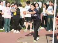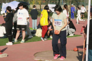 女子实心球比赛中,李心滢和嵇玉萌同学代表我院参赛,标准的动作,专注的目光,球在抛掷过后应声落地,好成绩也随之而来。