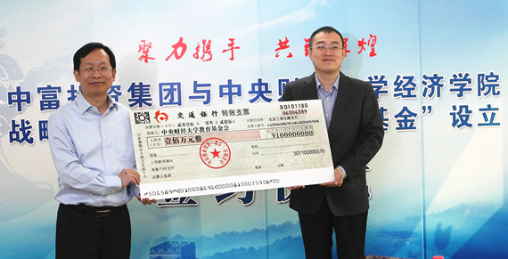 见证了双方牵手合作全过程的赵丽芬副校长在讲话中表示,看到自己昔日的学生今日事业有成,以感恩之心融智捐资助学院发展,她感到非常高兴,非常欣慰。欢迎周飞同学回到母校,感谢中富投资集团对学院发展和学校人才培养的鼎力支持。周飞校友的善举正是中财人“担当责任 勇往直前”精神的传承。一批批中财学子在校期间刻苦学习,走上工作岗位后努力拼搏,勇于担当的优秀品质为学校带来了良好的社会声誉。她指出,必赢766net手机版从2000年经济系成立至今,经过十五年的孕育和发展,如今已驶上了快车道,在教育教学、学科建设、师资队伍和人才培养等方面取得了一定的成绩,希望学院能以此次合作为契机,一方面与中富投资集团聚力携手,优势互补,紧密合作,取得新的成绩;另一方面,充分利用合作平台,培养更多的优秀学子,能够成为引领社会向前向上发展的中流砥柱。
