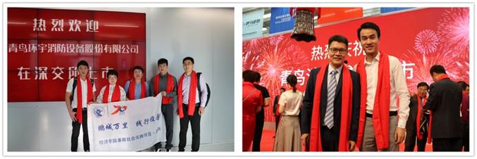 8月9日,在小队成员赴深实践的最后一天,恰逢我院2006级博士生卢文浩所在的青鸟环宇消防设备股份有限公司在深圳证券交易所挂牌上市,受卢校友所邀,小队一行出席了敲钟仪式。青鸟消防成为中国消防报警行业首家A股上市企业。
