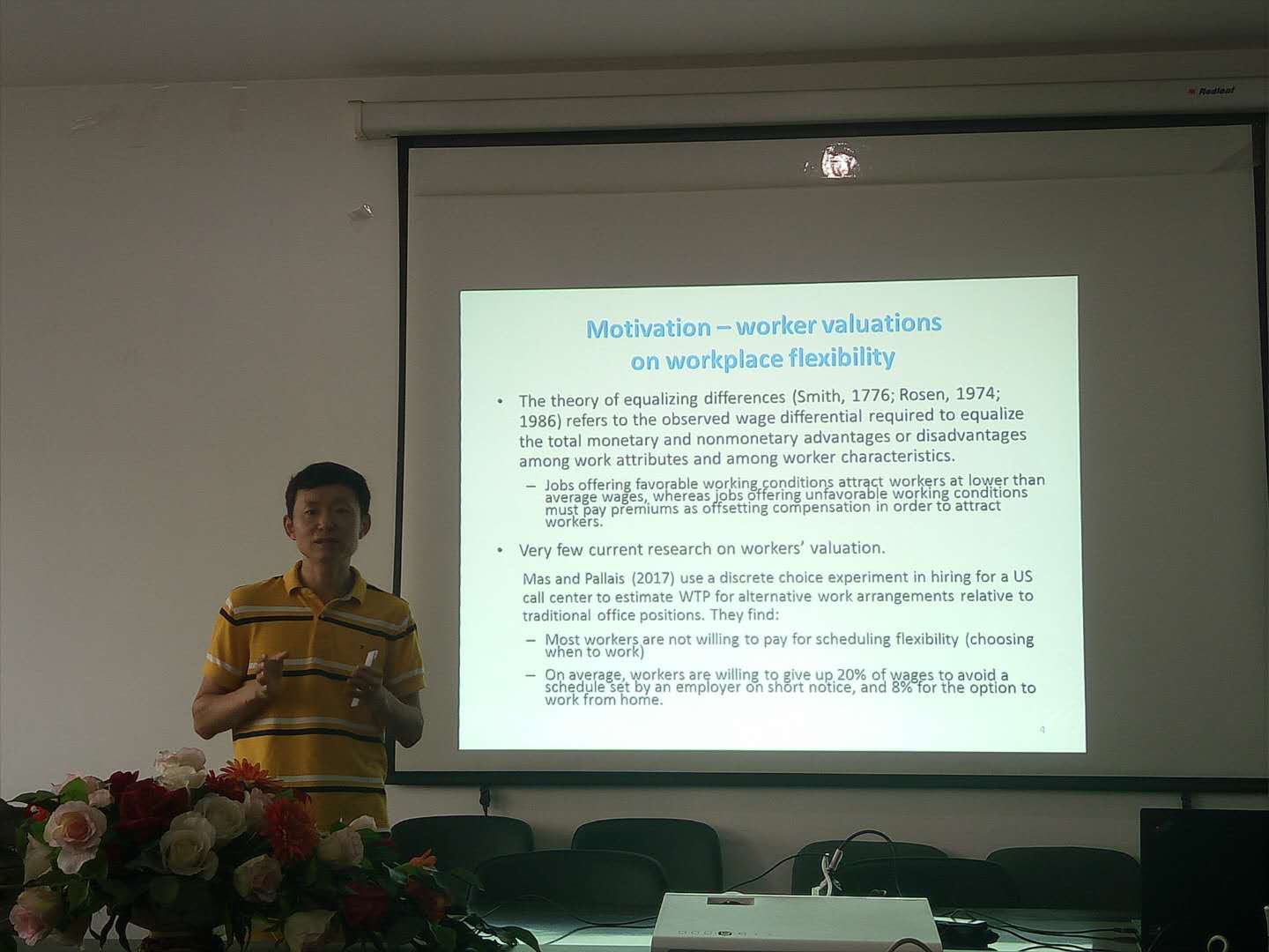 6月11日14:00,必赢766net手机版和社会与心理学院在中财大厦10层1033室合作开展此次行为经济学系列讲座,北京师范大学经济与工商管理学院何浩然副教授应邀以“Workers’ valuation ofworkplace flexibility: A field experiment”为题与参会师生进行了深入的交流。
