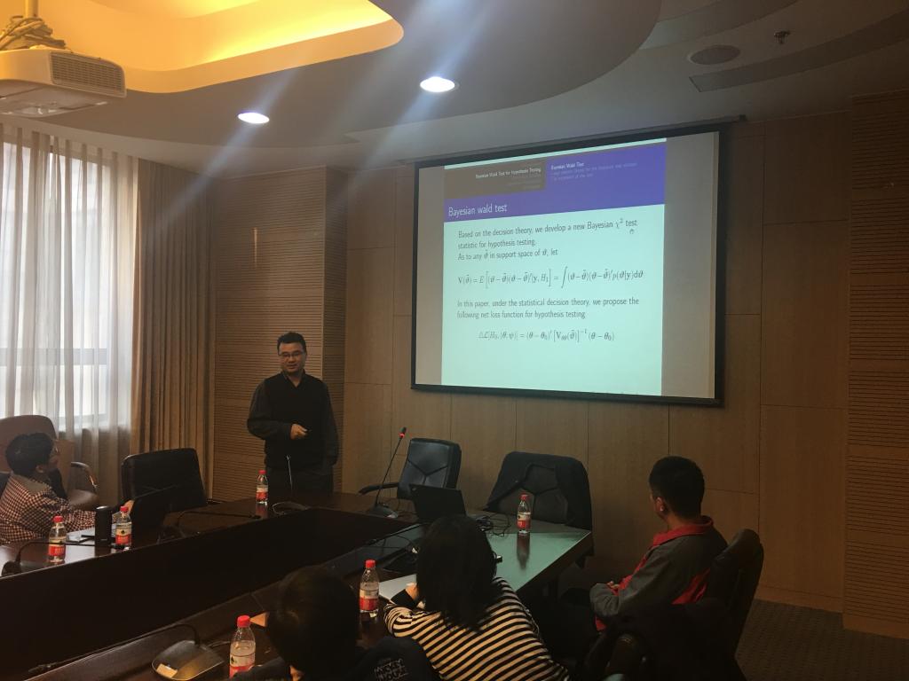 2017年11月1日,在学术会堂603报告厅,必赢766net手机版举行龙马经济学双周学术论坛第二期讲座。盘古智库学术委员,中国人民大学汗青经济与金融高级研究院院长助理李勇教授做了题为“A NewWald Test for Hypothesis Testing Based on MCMC outputs”的学术报告。讲座由必赢766net手机版黄乃静老师主持,必赢766net手机版副院长陈斌开教授及博士生参加了此次讲座。