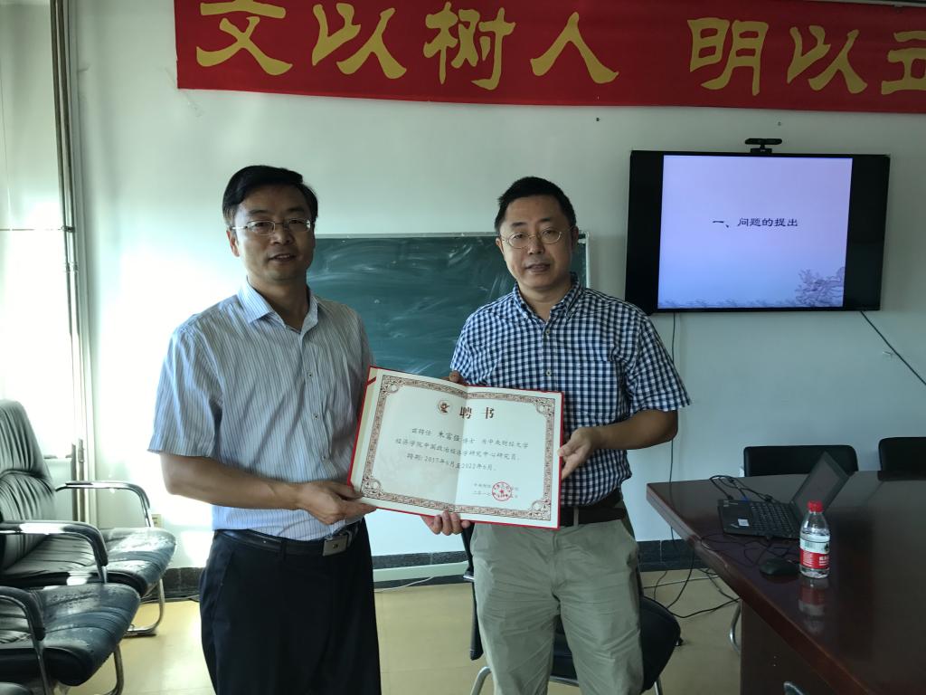 2017年9月11日上午,中山大学岭南学院朱富强教授做了题为“中西方的国家认知比较:基于契约主义视角的分析”的学术讲座。讲座由中国政治经济学研究中心主任林光彬教授主持,中国财政发展协同创新中心的曹明星老师、姚东旻老师、王麒植老师,政治经济学系何召鹏老师等学校部分师生参加了讲座。