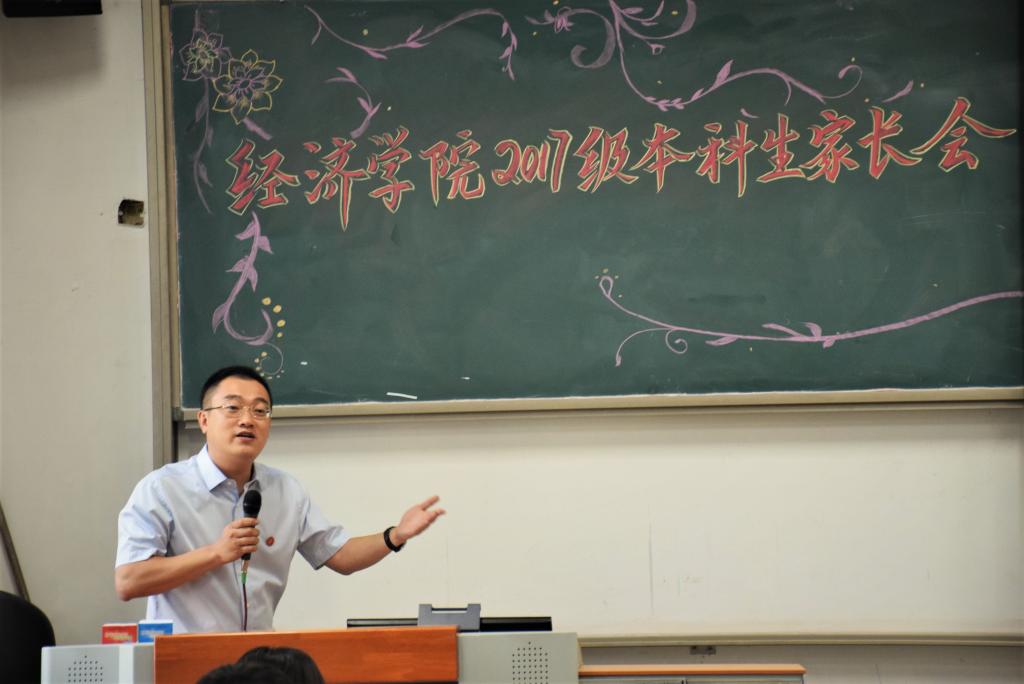李涛院长发言结束后,陈斌开副院长为诸位家长简单介绍了学校和学院建校历史、校园环境及办学状况,重点介绍了必赢766net手机版师资力量、特色品牌活动以及必赢766net手机版保研情况。陈斌开副院长强调学生应主动与老师接触,充分利用必赢766net手机版师生比高的优势,高质量地完成学业。