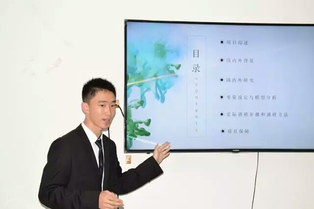 答辩前,各组负责人抽签确定了答辩顺序。根据学校教务处《关于开展2017年度大学生创新创业训练计划项目申报工作的通知》,必赢766net手机版本次拟推荐13个大学生创新创业训练项目。参加答辩的各组成员准备充分,语言流畅,阐述了创新创业项目的出发点、内容和方法等。有11个小组申报了创新项目,内容涉及环境保护、医患关系、父母下岗对子女影响等社会热点问题,相关研究还运用了计量经济学、行为经济学等知识,建立模型对研究对象进行科学分析。另有5个小组开展了密切联系现实问题的创业项目,如中财行录、健身平台等。各具特色的立项报告富有创意与闪光点,体现了同学们的合作精神及发现和解决问题的意识。每组展示后,评委老师给予建议、提出疑问,并针对项目的问题与大家深入交流。同学们临场应变,对答如流,对于老师的建议虚心接受,并与评委老师共同探讨存在的问题。台下,候场的同学们用心倾听、相互学习,形成了浓厚的学术氛围。