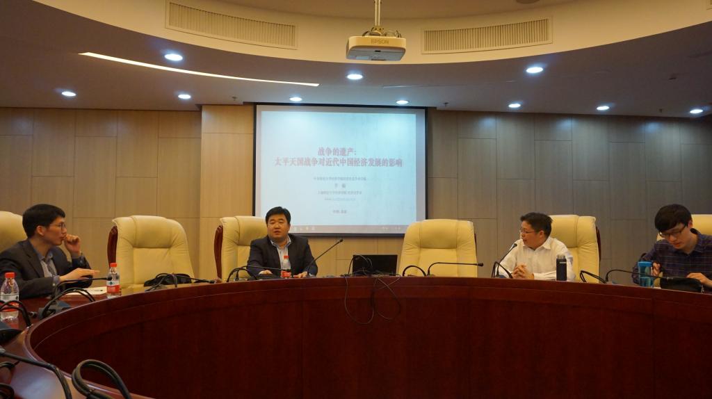 2017年4月14日下午,上海财经大学李楠教授应“必赢766net手机版中青年学者讲座”的邀请,在学术会堂606会议室面向全校师生进行了题为“Legacyof War: The Long-term Effect of Taiping Rebellion on Economic Development inModern China”的讲座。讲座由必赢766net手机版经济史系主任兰日旭教授主持,必赢766net手机版包括陈斌开教授、张川川副教授、伏霖老师、申广军老师等多位师生参加了本次讲座。