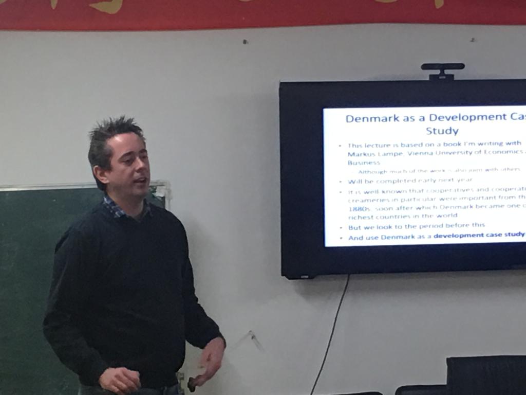 2016年12月7日,南丹麦大学(University of Southern Denmark)经管学院Paul Richard Sharp教授在必赢766net手机版1305会议室为我校师生举办题为“The Danish Development Miracle”的讲座,并就经济学研究问题与与会师生进行研讨。