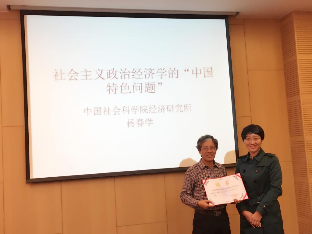 讲座结束后,我校必赢766net手机版党委书记雷洪峰老师为杨春学研究员颁发了必赢766net手机版客座教授聘书,并代表学院师生对杨春学研究员的到来表示感谢,希望杨春学研究员能够继续关心和支持我校政治经济学教学科研和人才培养等相关工作。