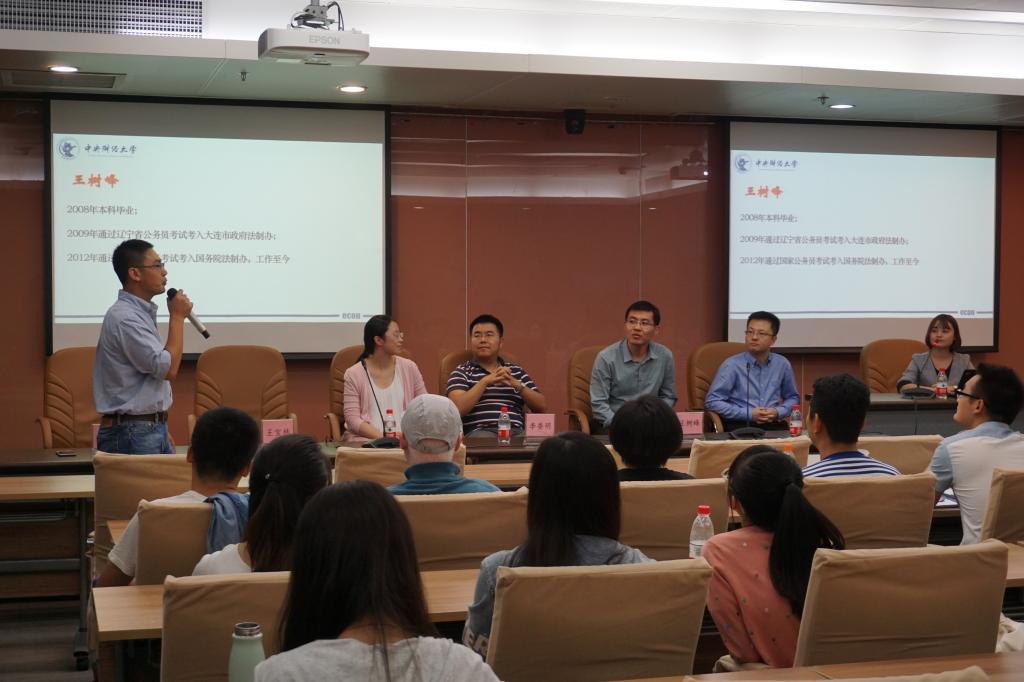 9月22日晚19:00必赢766net手机版“勇往职前”就业系列活动以即将到来的公务员报考为契机,在学院伏霖老师的大力推动下,分别邀请了就职于发改委的王宝林、国务院的王树峰、审计署的麻富根、证监会的姚远以及现任教于首都经济贸易大学的华图教育创始人李委明五位嘉宾,与学院师生于学术会堂706进行了公务员专场交流。活动由学院就业干事谢文娟老师主持。