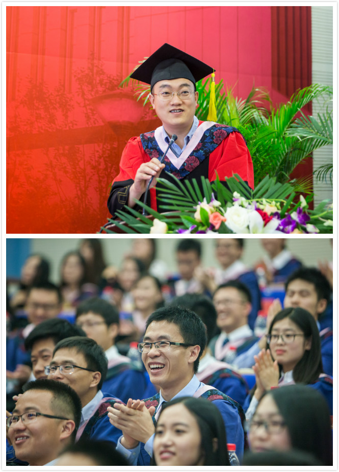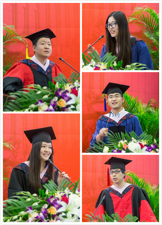 毕业,学生总有千言万语的不舍。来自2012级国民经济管理专业的李雨洁作为本科毕业生代表,回忆四年青葱岁月,有不舍、有遗憾、有难忘更有对未来的期盼,“我希望我们永远乐观勇敢,敢于也乐于接受苦难的考验;我希望以后无论发生什么,我们都能有所坚守,不忘本心;我希望我们以后不管从事什么行业,都能不只局限于眼前的世界,而是胸怀天下,经世济民”。来自2014级硕士毕业生代表杨文静回忆起求学两年中的点滴,学术上的提升、逻辑上的锻炼让她不断汲取前行的动力,“必赢766net手机版是我们走向未来的第一张名片,我们定不负母校,做一个优秀的中财人,卓越的社会人”。2013级博士毕业生代表张朝也与大家分享了自己的三种心情:感恩、感悟与祝愿囊括了三年攻读博士学位期间的复杂情感,并抒发了与同学们“要带着中财人勇于创新的精神杨帆远行,恪守初心、拼搏进取,以优异成绩回报母校”浓厚情怀。我院2008级国民经济管理专业本科生赵晓辉,2012-2014年优干保研留院工作,2014年继续攻读硕士学位,今年如期毕业。他在毕业典礼上以“与经院相遇的8年”为题,动情地与师生分享了他这8年间“问初心、问能力、问理想” 的三问与“心怀天下、心守正念、行稳致远”的三得,情真意切地表达了他对学院的感恩、对师长的感谢,以及对即将远行同窗的不舍。