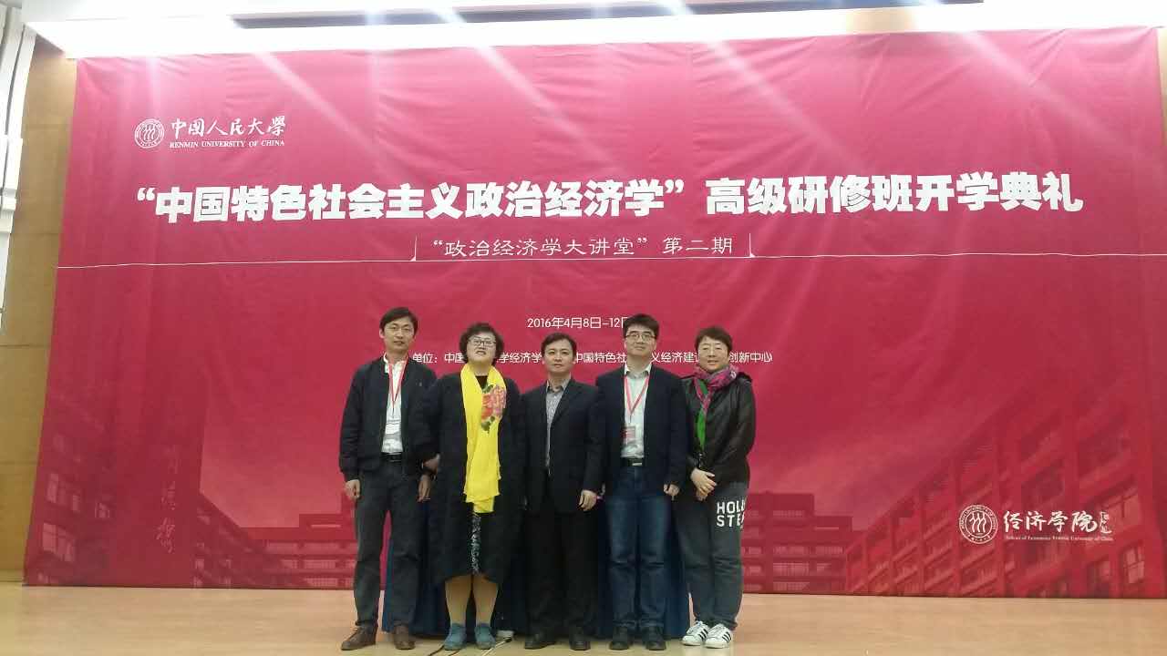 2016年4月8日到4月12日,我校必赢766net手机版教师刘滨、张维闵、顾炜宇、尹志锋、何召鹏参加了由中国人民大学必赢766net手机版与中国特色社会主义经济建设协同创新中心联合主办的“中国特色社会主义政治经济学”高级研修班。本期高级研修班以中国特色社会主义政治经济学为主题,深入探讨中国特色社会主义经济建设中重大理论现实问题。
