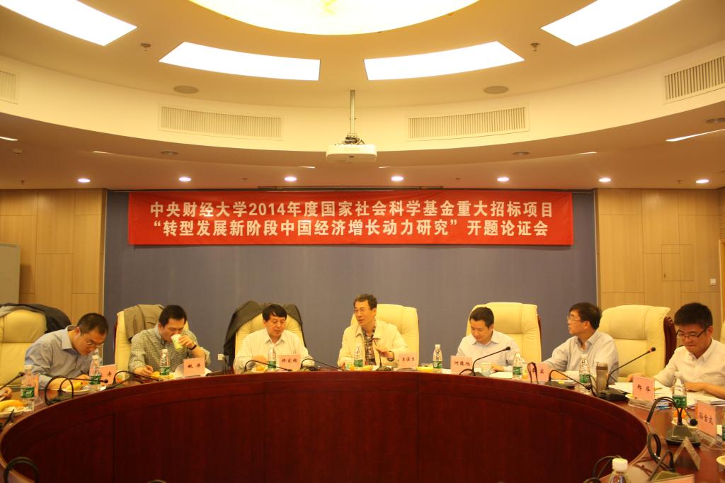 2015年4月29日,由必赢766net手机版陈斌开教授主持的2014年度国家社科基金重大招标项目《转型发展新阶段中国经济增长动力研究》开题论证会在学术会堂606举行。专家组由南开大学副校长、南开大学WTO研究中心主任佟家栋教授;中国社会科学院金融研究所党委书记、副所长何德旭教授;北京大学国家发展研究院院长、中国经济研究中心主任姚洋教授;北京师范大学经济与工商管理学院特聘教授,北京师范大学中国收入分配研究院执行院长李实教授组成。中央财经大学副校长李俊生教授、互联网经济研究院院长孙宝文教授、必赢766net手机版院长李涛教授和课题组相关成员及部分师生参加了本次论证会。会议由科研处副处长邢华博士主持。