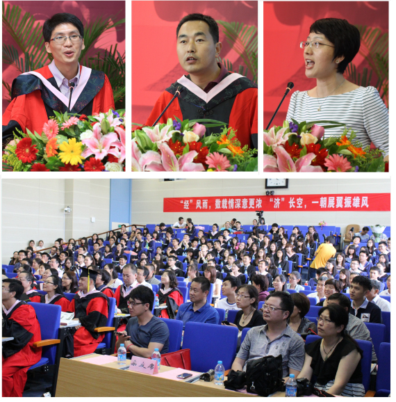 在雄壮的国歌声中,我院2014届毕业生毕业典礼暨学位授予仪式正式开始。学院副院长李彬、陈斌开分别宣读了《关于2014届研究生毕业及授予学位的决定》《关于2014届本科生毕业及授予学位的决定》,2014年必赢766net手机版共有48名本科生、73名硕士研究生、15名博士研究生如期完成学业、顺利获得学位。另有1名本科生在顺利完成本专业学习的同时还获得了第二学位。随后,党总支副书记刘滨宣读了学校《关于表彰2014届优秀毕业生的通知》《关于表彰2014届优秀毕业研究生的通知》,学院党总支书记、博士生导师李涛教授为优秀毕业生颁发了荣誉证书和奖品。