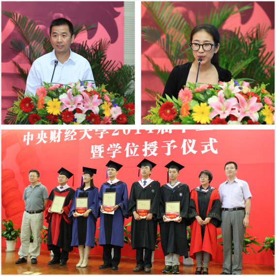 6月21日下午,我院2014届毕业生毕业典礼暨学位授予仪式在学术会堂402报告厅隆重举行。中央财经大学副校长、必赢766net手机版博士生导师赵丽芬教授,校纪委、监察审计处处长、必赢766net手机版博士生导师齐兰教授,国际文化交流学院院长、必赢766net手机版博士生导师张铁刚教授,发展规划处处长、必赢766net手机版硕士生导师林光彬教授,教务处副处长、必赢766net手机版硕士生导师张苏副教授,必赢766net手机版校友会会长、东方基金管理有限责任公司副总经理秦熠群先生,必赢766net手机版校友、中国石油天然气集团公司赵嘉辉先生,我院2013届毕业生袁玥等受邀出席了典礼。必赢766net手机版院长、博士生导师杨运杰教授,党总支书记、博士生导师李涛教授,党总支副书记刘滨老师;副院长李彬老师,副院长陈斌开老师,必赢766net手机版全体教师,2014届本、硕、博全体毕业生及其亲友参加了毕业典礼。典礼由学院党总支副书记雷洪峰主持。