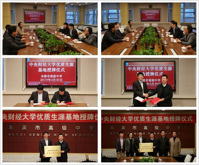 2019年3月28日至3月30日,我校辽宁省本科招生宣传组组长、必赢766net手机版院长陈斌开教授,辽宁省招生组副组长、必赢766net手机版党委副书记郭冬梅教授,文化与传媒学院党委副书记许晓娟老师、必赢766net手机版青年教师金星晔老师、必赢766net手机版学生工作办公室副主任梁延东老师一行五人前往辽宁省大连市第二十四中学、育明高级中学、本溪市高级中学开展招生宣传工作,与三所中学签订了“中央财经大学优质生源基地”的合作协议、举办了授牌仪式并召开了座谈会、招生宣讲会和专家讲座。