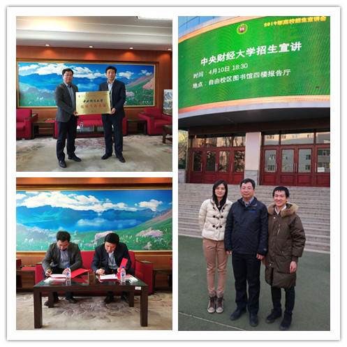 4月11日上午,我校招生宣传组到达长春吉大附中实验学校。上午9点,该校校长李海军、高三年级主任汪雷等人热情接待了我校招生组一行,并在学校会议室举办座谈会。座谈会上,李海军校长介绍了长春吉大附中实验学校的基本情况,也希望能与中央财经大学多多沟通交流,探索人才培养的最有效教育途径。史宇鹏教授介绍了中财的基本情况与招生政策,以及学校的特色和办学成绩。紧接着,双方签订了合作协议并举行了授牌仪式。