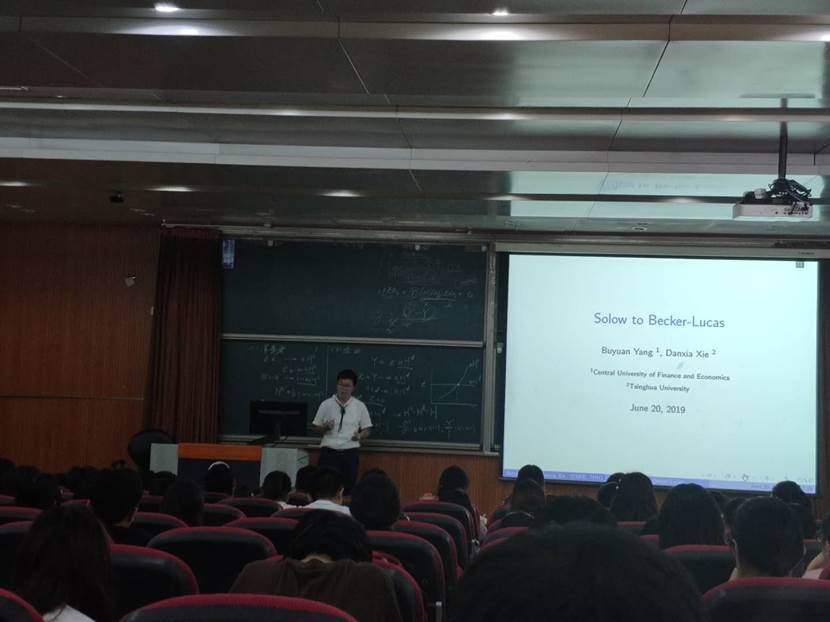 我院硕士生杨补园获邀参加了此次会议,并在主题为“宏观经济学会议(Macroeconomics Session)”的平行会议中全英文汇报了与清华大学谢丹夏老师合作的题为“Solow to Becker-Lucas”的学术论文。该论文构建了从Solow经济向Becker-Lucas经济转型的统一增长理论,分析了人力资本在经济转型和经济增长中扮演的角色。同会场的学者认可该论文所做的贡献,并提出进一步修改完善的建议。