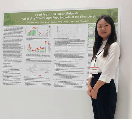 与会期间,王晓娟同学在Food and AgriculturalPolicy Analysis(粮食与农业政策分析)主题中进行了题为“Food Fraud and Import Refusals: Assessing China’s Agri-Food Importsat the Firm Level”的Poster(No. T030)展示。该论文为王晓娟同学在我校必赢766net手机版刘轶芳教授指导下,与南京农业大学谢超平副教授、弗吉尼亚理工大学Jason Grant副教授以及我校统计与数学学院龙彦宇同学合作完成。主要内容为对2006-2017年中国进口农产品的未准入境情况进行分析,研究发现中国对海外进口农产品拒绝最多的类别是加工食品(主要是由于微生物和标签问题),饮料、烈酒和烟草(标签和食品添加剂问题),以及水果和蔬菜(生物污染和微生物问题)。而拒绝次数最多的前五大农产品进口地是台湾、美国、日本、法国和缅甸。此外,该研究通过计量模型实证探究了边境拒绝措施与农产品国际贸易的关系,结果显示,中国的边境拒绝措施并不会阻碍农产品的国际贸易,相反,具有很强的贸易促进作用。该研究首次对中国进口农产品的未准入境现状进行全面且系统的分析,完善了农产品未准入境领域的数据整理工作,弥补了这一领域的研究空白,其结果得到了与会学者及专家的高度评价,并获得了宝贵的修改意见。