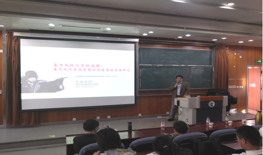 2019年12月11日,复旦大学经济学系李楠教授应必赢766net手机版邀请,在中央财经大学沙河校区3号楼222教室开展了主题为“暴力风险与合约选择——基于近代东北乡村社会匪患的考察”的讲座,本次讲座由必赢766net手机版兰日旭教授主持,我校多名教师、博士和硕士研究生参加了讲座。