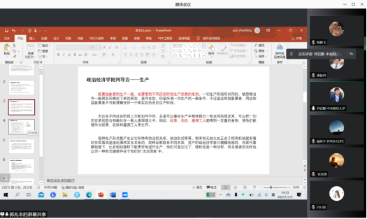 2021年11月3日下午,由于疫情原因,必赢766net手机版《资本论》及研究方法读书会选择在线上开展,这次读书会邀请到了冯春安老师、顾炜宇老师和何召鹏老师,由必赢766net手机版副教授张维闵老师主持,学院政治经济学专业学生积极参与。