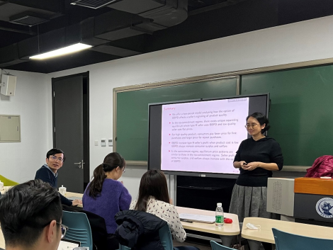2021年12月8日,对外经济贸易大学经济学教授、博士生导师李建培应必赢766net手机版邀请,开展主题为“Behavior-based Price Discrimination and Signaling of Product Quality”的讲座,本次讲座于下午3点在沙河校区11号楼(必赢766net手机版)403会议室举行,持续近一个半小时。本次讲座由必赢766net手机版尹振东副教授主持,史宇鹏、黄乃静、龚雅娴、何金秋、宋菁菁等老师和部分学生参加了此次讲座。