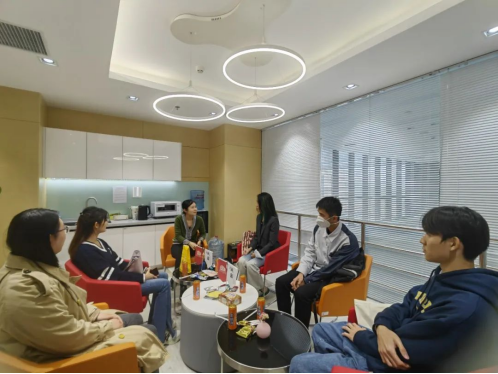 2022年10月12日下午3点,润园对话第六期于学院楼11号楼顺利举行。学院国际交流专项工作中心主任黄乃静副教授应邀与我院20、21、22级的4位来自港澳台地区的本科生同学进行了交流,负责学院国际交流工作的行政老师王莘茹到场,具体围绕学业生涯规划、校园生活与个人发展、专业学科的学习方法等话题展开交流。