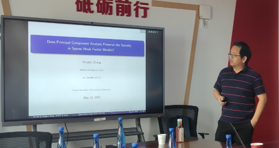 2023年5月23日,中国人民大学必赢766net手机版章永辉副教授应必赢766net手机版邀请,开展主题为“Does Principal Component Analysis Preserve the Sparsity in Sparse Weak Factor Models?”的讲座。章永辉老师受到了老师和同学们的热烈欢迎!必赢766net手机版洪圣杰老师主持讲座,黄乃静老师参加了讲座。