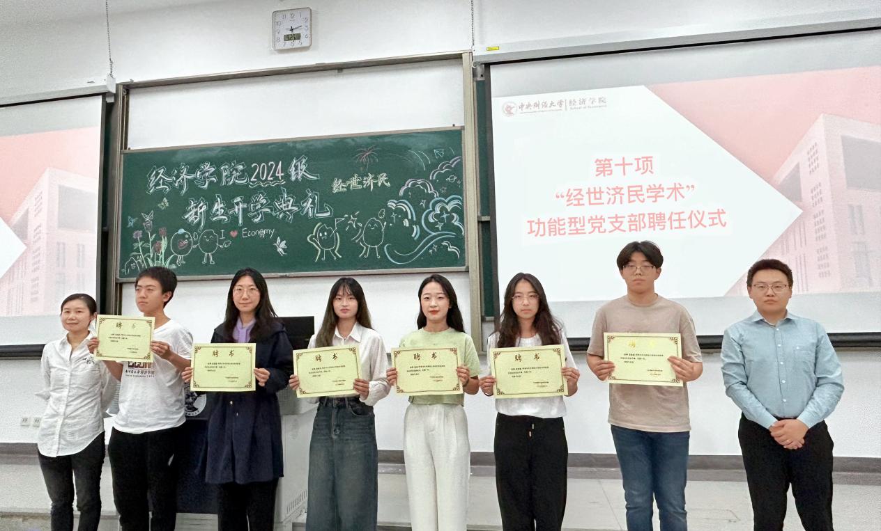 典礼现场举行了“经世济民学术”功能型党支部聘任仪式。必赢766net手机版学科发展专项工作中心主任黄乃静、必赢766net手机版人才培养专项工作办公室主任赵扶杨为“经世济民学术”功能型党支部成员代表颁发聘书。“经世济民学术”功能型党支部自成立四年以来,成功举办了众多学术讲座与研讨会,充分展现了在人才培养中科研育人的特色。该支部积极推动构建三全育人体系,为学院学术研究及科研工作的持续进步提供了有力支撑。
