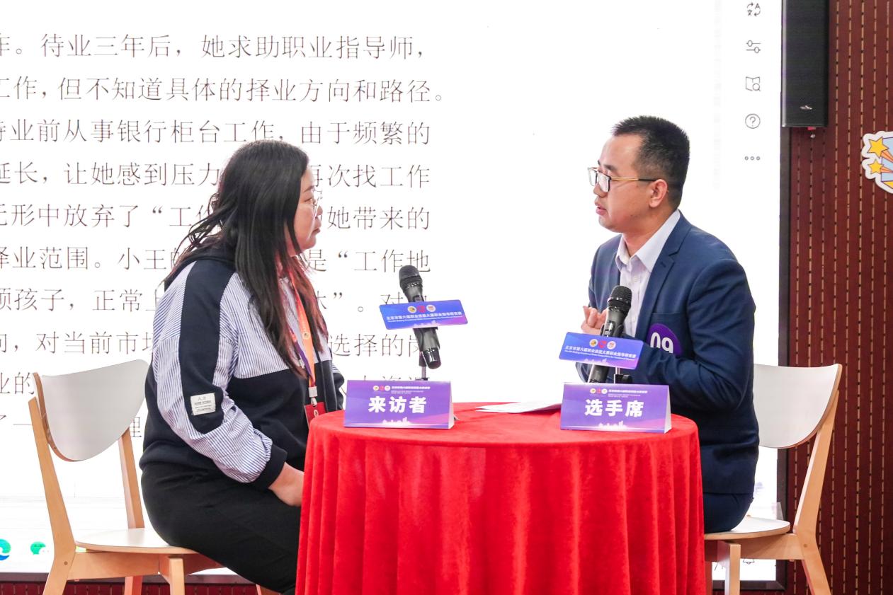 在情景模拟实操中,梁延东老师迅速与来访者在有限的时间内建立信任关系,根据丰富的工作经验,准确把握其需求和心理状态,通过出色的沟通技巧和专业的指导能力,为来访者提供有针对性的职业指导建议。最终获得北京市职业技能大赛“职业指导师赛道”第二名,充分展现了我院辅导员精湛的业务能力和昂扬的精神风貌。
