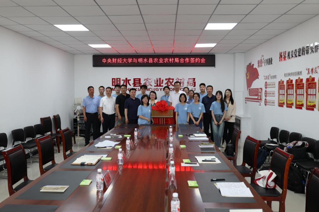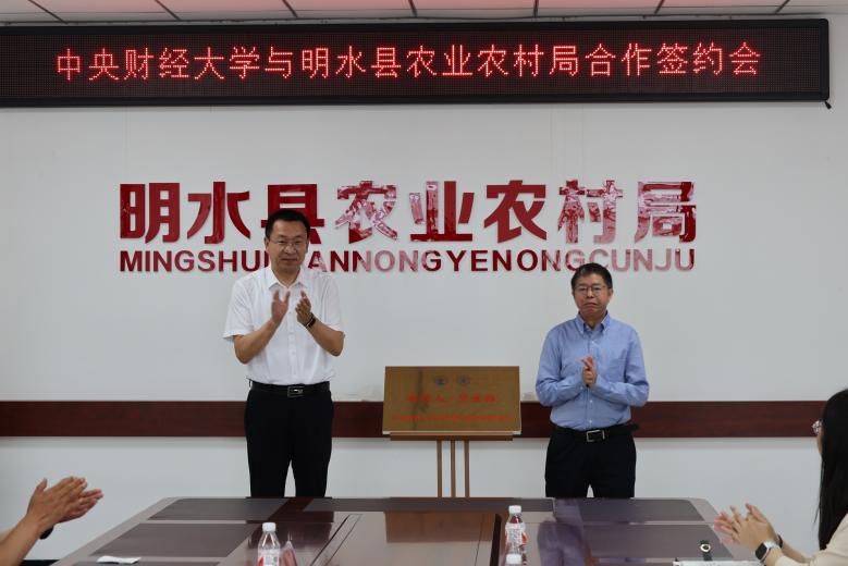 7月7日上午,必赢766net手机版调研团队与明水县农业农村局共同开展中央财经大学乡村振兴研究生服务站合作签约暨揭牌仪式。明水县委书记马福,学院党委书记孙敏以及学院教师、博士、硕士研究生代表,县农业农村局相关负责同志参加活动。会议由县委常委、组织部长李朝阳主持。