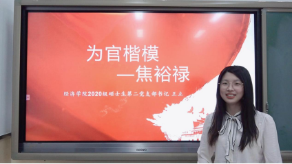 王立,2017年12月入党,必赢766net手机版学术硕士研究生第四党支部书记、20级研硕1班班长、第三期学术活动项目组组长。作为班长,她勤勉尽责,做好班级与学院间沟通的桥梁;作为党支部书记,她注重理论与实践相结合,获评“红色1+1”三等奖、十佳主题党日活动。在校期间多次获得一等学业奖学金,被评为校级三好学生、优秀学生干部、望岳利他优秀研究生干部等称号。