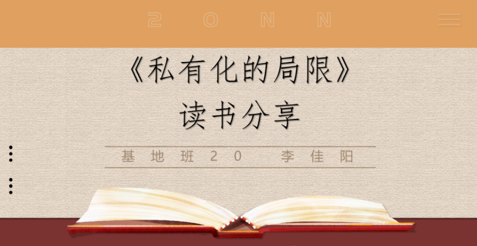 李佳阳同学向大家介绍了《私有化的局限》一书。本书是魏伯乐和其他两位教授写给罗马俱乐部的报告。他们根据上世纪八十年代以来私有化在各国实践的丰富案例,提出了私有化的局限以及相关的应对措施,并围绕私有化的界限在哪里,如何寻求私营部门和公共领域之间的平衡等问题进行论述。 |