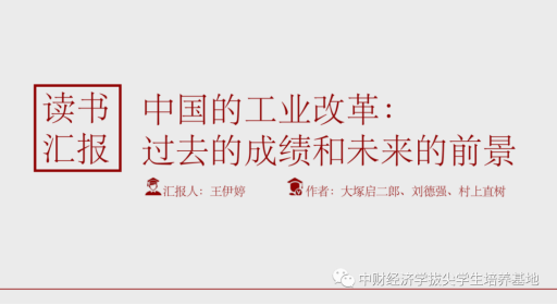王伊婷同学为我们分享了《中国的工业改革——过去的成绩和未来的前景》。本书的三位作者分别是大塚启二郎、刘德强和村上直树,他们都有着非常深厚的现代西方经济学理论分析和实证研究的功底,在研究中国改革这一主题时有其特殊优势。作者们历时100余天,同中国许多经营者、政府官员等进行访问和座谈,并选择钢铁、机床和服装工业为对象,在国家统计局及有关部门的协助下获得第一手调查资料,从微观层次上通过数量分析来理解中国经济发展和变化的机制,并将这一宏观主题分解为几个便于操作的分析主题,得到了一系列对当时中国经济改革富有启示意义的结论:已有改革提高了国有企业的生产效率;在钢铁和机床业这样资本密集的产业中并不存在规模经济,在机床工业中反而存在显著的规模不经济;大量劳动密集的乡镇企业是追求利润的、合乎经济理性的企业;乡镇企业的生产效率高于国有企业的生产效率等等。当时的中国经济学界,关于中国的经济改革研究更多的偏重于定性论述和宏观分析,而《中国工业改革》这本书将“本土化、规范化,、国际化”三者结合,树立了一个方法论方面的典范,对任何一位关注中国改革和发展的人来说都值得研读。
