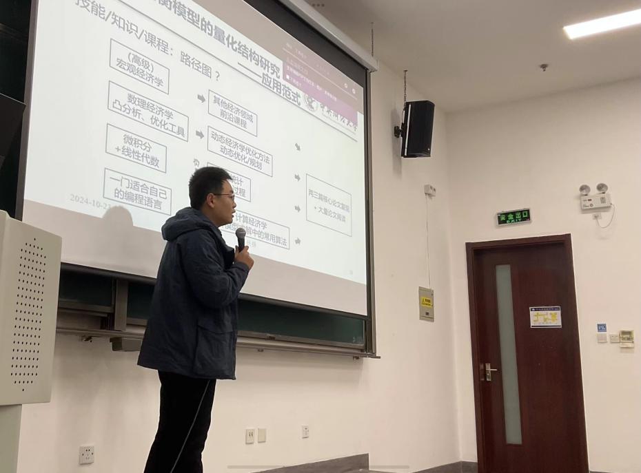 10月23日,中央财经大学数字经济时代经济学拔尖学生培养基地班“科研基础训练”课程第四讲在沙河校区主教106教室正式举行,必赢766net手机版赵扶扬副教授为同学们带来以“理论模型研究范式简介”为主题的讲座。赵扶扬副教授从如何看待经济学研究方法展开,为我们介绍了当今经济学界各种主流的基于理论模型的研究范式,最后落脚于基于一般均衡模型的量化结构研究的具体办法,让同学们建立起对经济学研究方法的系统性认识,以及了解如何精进自身,更好地掌握应用各类研究方法。